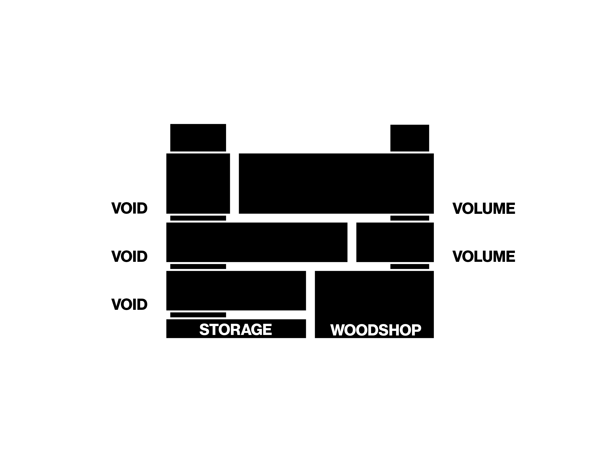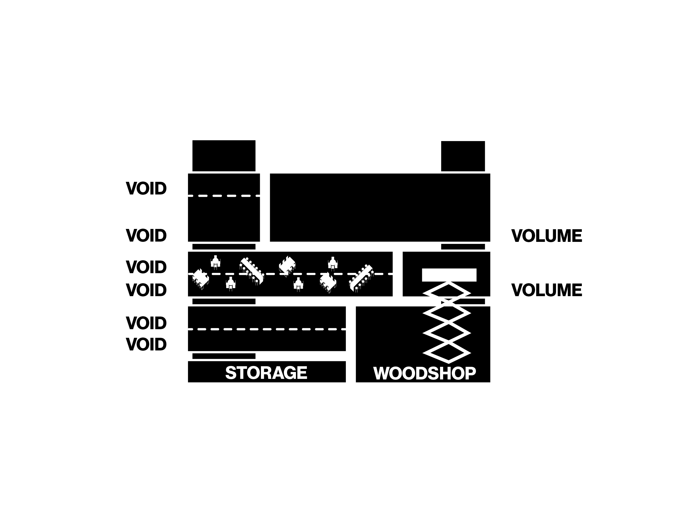 The different part of the program were rearange based on their spatial needs, leading to the creation of 3 types of spaces :